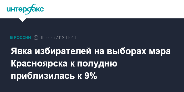 "По полученным из территориальных избирательных комиссий данным, на 12 часов местного времени явка избирателей составила 8,64 %. Своим правом голоса уже воспользовались 60 тыс. 700 красноярцев", - сообщили агентству "Интерфакс-Сибирь" в городской избирательной комиссии Красноярска.