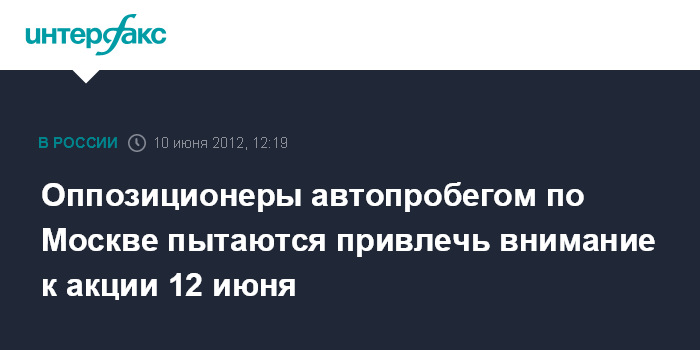 Оппозиционеры автопробегом по Москве пытаются привлечь внимание к акции 12 июня