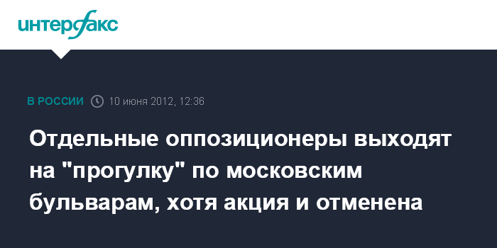 Москва. 10 июня. INTERFAX.RU - Отдельные участники оппозиционной группы "Сопротивление" прибывают в центр Москвы, несмотря на отмену акции "большая муравьиная прогулка". Как передают корреспонденты "Интерфакса", несколько десятков человек вышли из вестибюлей станций метро "Арбатская", "Чистые пруды", "Кропоткинская" и "Тверская", расположенных на бульварном кольце.