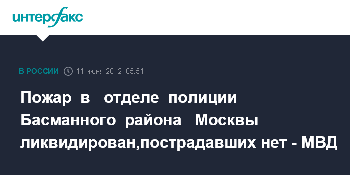 Пожар в отделе полиции Басманного района Москвы ликвидирован,пострадавших нет - МВД