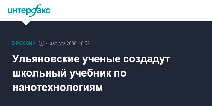 Москва. 4 августа. INTERFAX.RU - Ульяновский государственный университет (УлГУ) выиграл конкурс на разработку учебной программы для школьников "Введение в нанотехнологии".