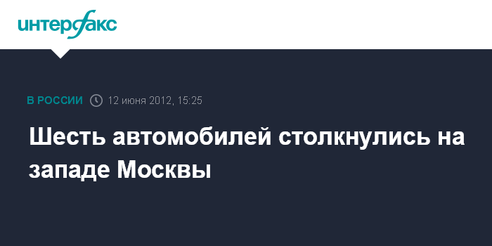 Москва. 12 июня. INTERFAX.RU - Шесть человек пострадали в столкновении шести автомашин на западе Москвы, сообщил "Интерфаксу" источник в правоохранительных органах.
