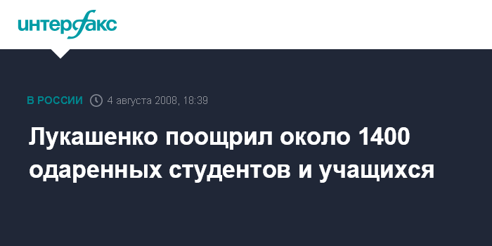 Москва. 4 августа. INTERFAX.RU - Президент Белоруссии Александр Лукашенко утвердил решение совета специального фонда президента по социальной поддержке одаренных учащихся и студентов, сообщили агентству "Интерфакс-Запад" в понедельник в пресс-службе главы государства".