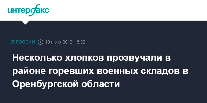 Нижний Новгород. 13 июня. INTERFAX.RU - Несильные хлопки были слышны в среду днем в районе военных складов министерства обороны РФ в Бузулукском районе Оренбургской области, где ликвидируются последствия произошедшего 11 июня пожара.