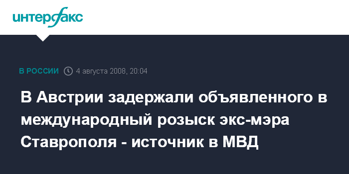 В Австрии задержали объявленного в международный розыск экс-мэра Ставрополя - источник в МВД