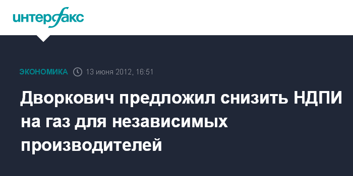Поселок Газопровод (Московская область). 13 июня. INTERFAX.RU - Налог на добычу полезных ископаемых (НДПИ) на газ для независимых производителей с 1 июля 2013 года может быть снижен, заявил вице-премьер РФ Аркадий Дворкович журналистам по итогам правительственного совещания по вопросу налогообложения нефтегазового сектора, прошедшего в центральном офисе ООО "Газпром межрегионгаз".
