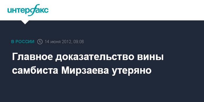 Москва. 14 июня. INTERFAX.RU - Испорчено основное доказательство вины чемпиона мира по смешанным единоборствам Расула Мирзаева, после удара которого в августе 2011 года погиб 19-летний московский студент Иван Агафонов, сообщает "Коммерсант" в четверг.