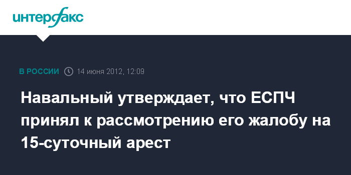 Москва. 14 июня. INTERFAX.RU - Европейский суд по правам человека принял жалобу блогера Алексея Навального на решение о его административном аресте после задержания на акции оппозиции.