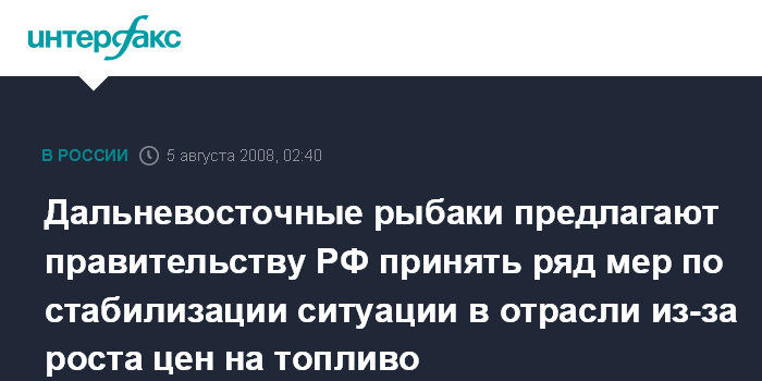 Дальневосточные рыбаки предлагают правительству РФ принять ряд мер по стабилизации ситуации в отрасли из-за роста цен на топливо