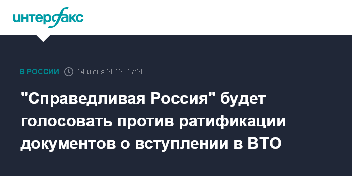 "Справедливая Россия" будет голосовать против ратификации документов о вступлении в ВТО