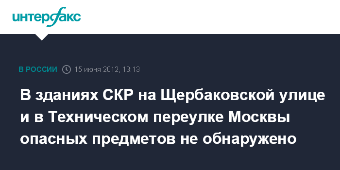 В зданиях СКР на Щербаковской улице и в Техническом переулке Москвы опасных предметов не обнаружено