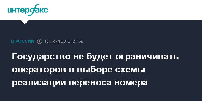 Москва. 15 июня. INTERFAX.RU - Государство не будет ограничивать операторов в выборе схемы реализации переноса номера, заявил журналистам замглавы Минкомсвязи Наум Мардер по итогам заседания научно-технического совета (НТС) по вопросу внедрения в России принципа переносимости номеров.
