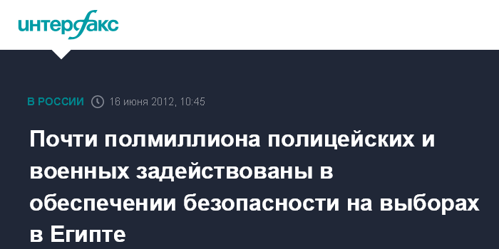 По информации телеканала, безопасность в ходе второго тура голосования будут обеспечивать около 400 тыс. египетских полицейских и военных.