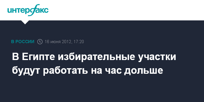 Каир. 16 июня. INTERFAX.RU - Центризбирком Египта решил продлить на час работу избирательных участков в ходе второго тура президентских выборов, сообщает в субботу местная газета "Аль-Ахрам". Причиной продления работы избирательных участков стало то, что некоторые из них открылись с опозданием, отмечает "Аль-Ахрам". Таким образом, избирательные участки закроются в 21:00 по местному времени (23:00 мск).