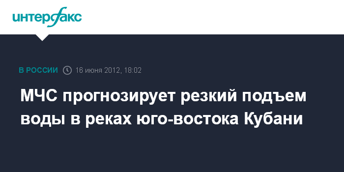 Ростов-на-Дону. 16 июня. INTERFAX.RU - Из-за предполагаемых больших осадков, ожидаемых на Кубани и в Адыгее, в Южном региональном центре МЧС РФ прогнозируют резкий подъем воды в водоемах Краснодарского края. "Через два-три часа и в последующие сутки ожидается выпадение большого количества осадков на территории Краснодарского края", - сообщили агентству "Интерфакс-Юг" в субботу в Южном региональном центре МЧС РФ.