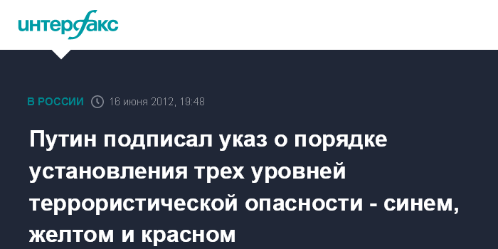 Путин подписал указ о порядке установления трех уровней террористической опасности - синем, желтом и красном