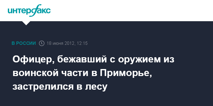 "Пропавший лейтенант найден мертвым. Тело офицера обнаружили вечером в минувшее воскресенье в лесу с огнестрельным ранением в голову", - сообщил агентству "Интерфакс - Дальний Восток" в понедельник следователь по особо важным делам военно-следственного управления СКР по Тихоокеанскому флоту Сергей Андриянов.