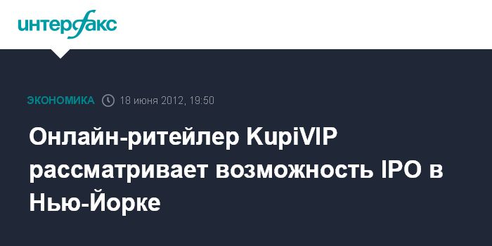 Москва. 18 июня. INTERFAX.RU - Онлайн-ритейлер KupiVIP рассматривает возможность IPO в Нью-Йорке через два года, сообщил "Интерфаксу" совладелец и генеральный директор компании Оскар Хартманн,