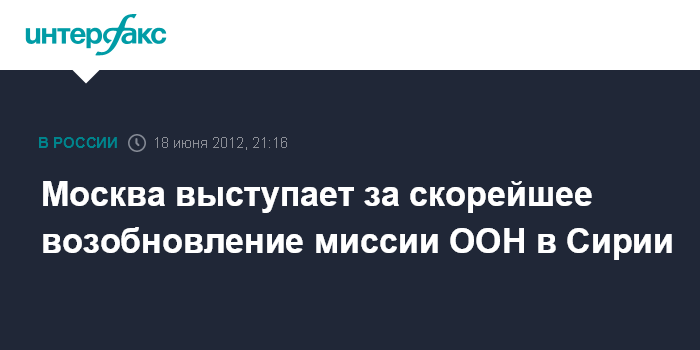 Москва выступает за скорейшее возобновление миссии ООН в Сирии