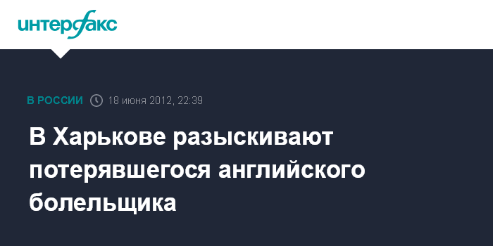 Как говорится в сообщении пресс-центра принимающего матчи чемпионата Европы по футболу города, после матча Португалия-Нидерланды в Харькове, они потеряли своего товарища - Дэвида Форда. Ситуация усложняется тем, что документы, мобильный телефон и деньги потерявшегося английского фана остались у его товарищей. Последний раз друзья Дэвида видели его на стадионе Харькова и он был в состоянии алкогольного опьянения.