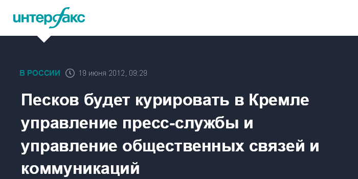 Песков будет курировать в Кремле управление пресс-службы и управление общественных связей и коммуникаций