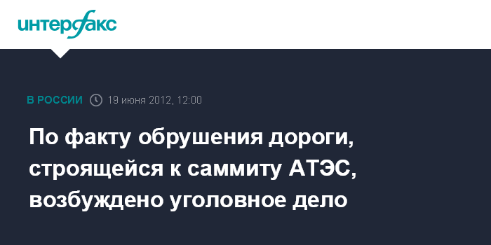 По факту обрушения дороги, строящейся к саммиту АТЭС, возбуждено уголовное дело