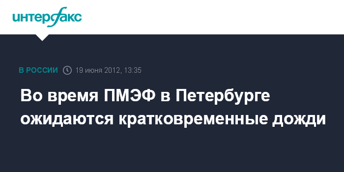 Москва. 19 июня. INTERFAX.RU - Директор Гидрометцентра России Роман Вильфанд прогнозирует комфортную погоду на период международного экономического форума в Санкт-Петербурге, однако рекомендует его участникам и гостям запастись зонтиками.