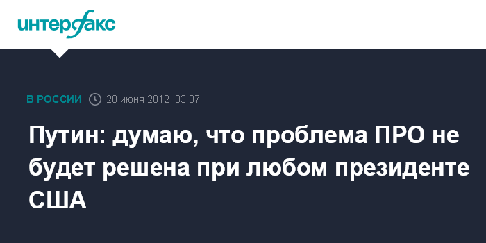 "Думаю, что проблема ПРО не будет решена вне зависимости от того, будет переизбран Обама или не будет", - сказал В.Путин на пресс-конференции в Лос-Кабосе.
