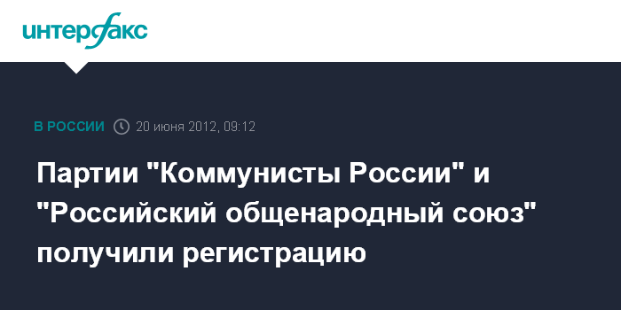 Москва. 20 июня. INTERFAX.RU - Партии "Коммунисты России" и "Российский общенародный союз" получили государственную регистрацию в Минюсте, увеличив до девятнадцати число политических организаций, образованных в соответствии с поправками в законодательство.