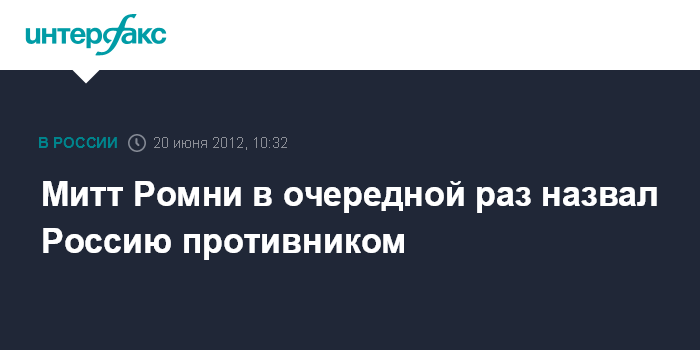 "Конечно, мы не враги. Мы не боремся друг с другом, и времена "холодной войны" закончились, - заявил Ромни. - Однако Россия является нашим геополитическим противником, и в связи с этим, думаю, вполне понятно, что они (власти России - ИФ) продолжают проводить политику, противоречащую интересам нашего государства".