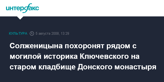 Солженицына похоронят рядом с могилой историка Ключевского на старом кладбище Донского монастыря
