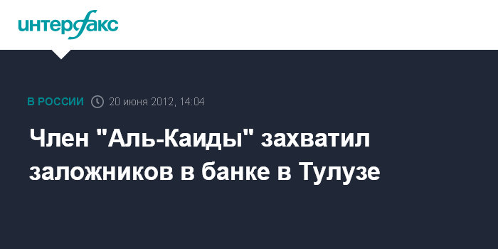 Париж. 20 июня. INTERFAX.RU - Минимум четыре человека взяты в заложники в отделении одного из банков в городе Тулузе на юге Франции, сообщили в среду местные СМИ.