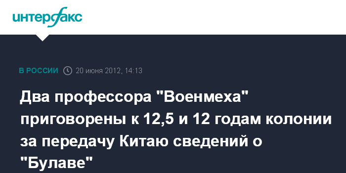 Санкт-Петербург. 20 июня. INTERFAX.RU- Городской суд Петербурга в среду вынес обвинительный приговор двум профессорам Балтийского государственного технического университета "Военмех" имени Устинова по обвинению в шпионаже в пользу Китая.