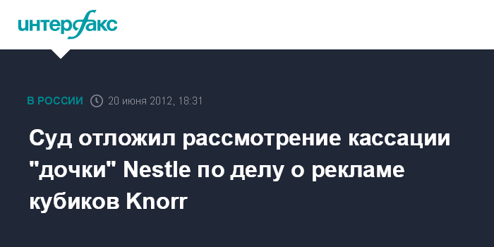 Суд отложил рассмотрение кассации "дочки" Nestle по делу о рекламе кубиков Knorr