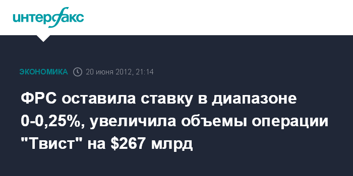 Объемы так называемой операции "Твист", направленной на продление срочности бумаг в портфеле американского ЦБ, увеличены на $267 млрд. Программа завершится в конце 2012 года, а не 30 июня, как предполагалось ранее.