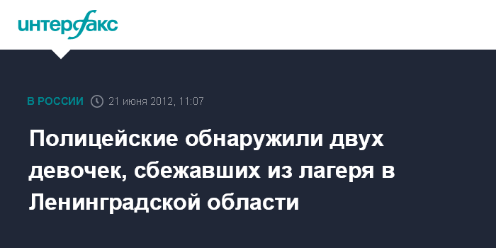 Санкт-Петербург. 21 июня. INTERFAX.RU - Полицейским удалось в четверг выйти на связь с двумя девочками, накануне вечером сбежавшими из лагеря в Логийнопольском районе Ленинградской области, сообщил "Интерфаксу" официальный представитель главного управления МВД по Петербургу и Ленинградской области.