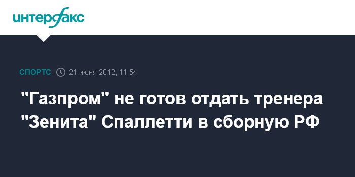 Санкт-Петербург. 21 июня. INTERFAX.RU - "Газпром", являющийся акционером и генеральным спонсором футбольного клуба "Зенит", не готов отдать главного тренера Лучано Спаллетти в сборную России по футболу, сообщил журналистам глава "Газпрома" Алексей Миллер в кулуарах Петербургского международного экономического форума.