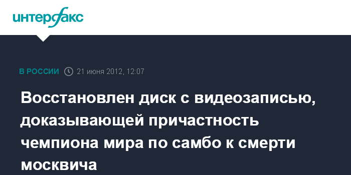 Восстановлен диск с видеозаписью, доказывающей причастность чемпиона мира по самбо к смерти москвича