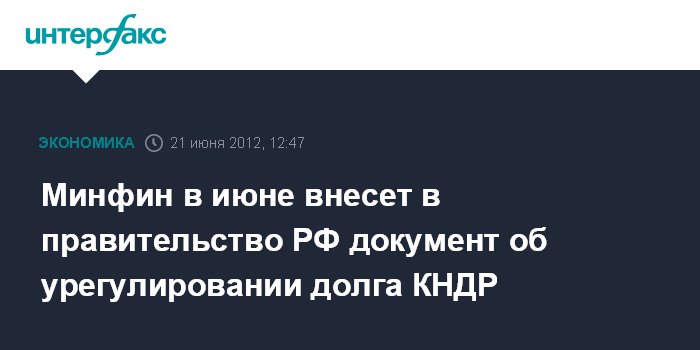 Минфин в июне внесет в правительство РФ документ об урегулировании долга КНДР