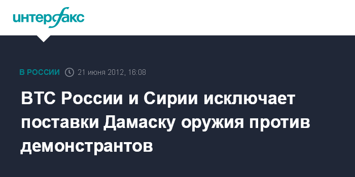 ВТС России и Сирии исключает поставки Дамаску оружия против демонстрантов