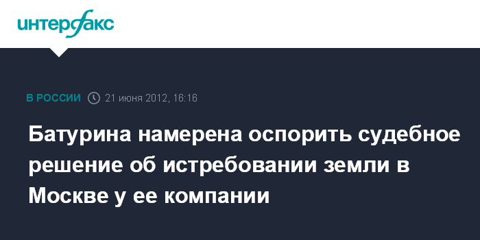 Батурина намерена оспорить судебное решение об истребовании земли в Москве у ее компании
