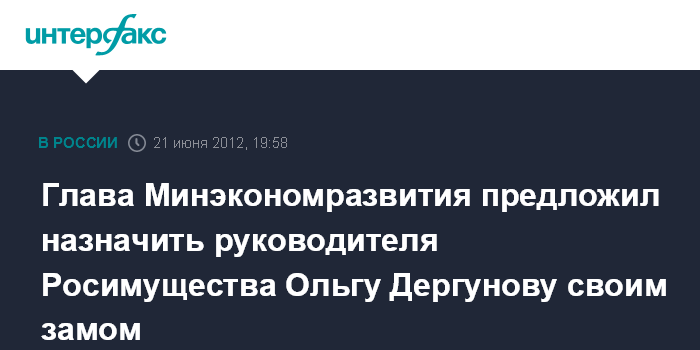Глава Минэкономразвития предложил назначить руководителя Росимущества Ольгу Дергунову своим замом