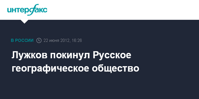 Москва. 22 июня. INTERFAX.RU - Экс-мэр Москвы Юрий Лужков заявил о выходе из Русского географического общества (РГО) из-за того, что на одном из последних заседаний ему якобы не дали встретится Владимиром Путиным.