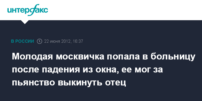 Молодая москвичка попала в больницу после падения из окна, ее мог за пьянство выкинуть отец