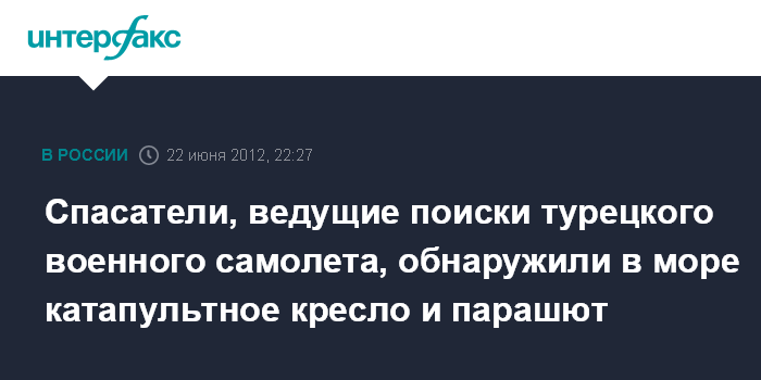 Стамбул. 22 июня. INTERFAX.RU - Командам, занимающимся поисками пропавшего над восточным Средиземноморьем турецкого военного самолета Ф-4 "Фантом", удалось обнаружить в море катапультное кресло и парашют, сообщает в пятницу турецкий телеканал ТРТ.