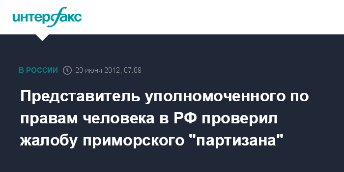Владивосток. 23 июня. INTERFAX.RU - Уполномоченному по правам человека в РФ будут представлены материалы проведенной в Приморье проверки по жалобе Алексея Никитина - одного из "приморских партизан".