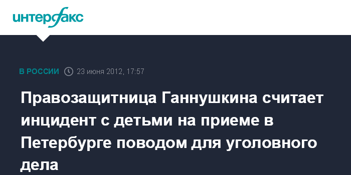 Правозащитница Ганнушкина считает инцидент с детьми на приеме в Петербурге поводом для уголовного дела