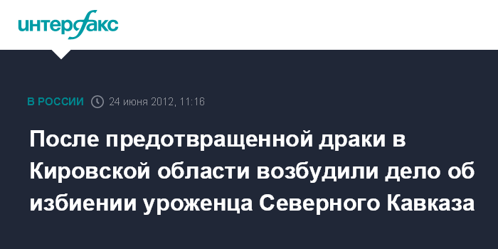 После предотвращенной драки в Кировской области возбудили дело об избиении уроженца Северного Кавказа