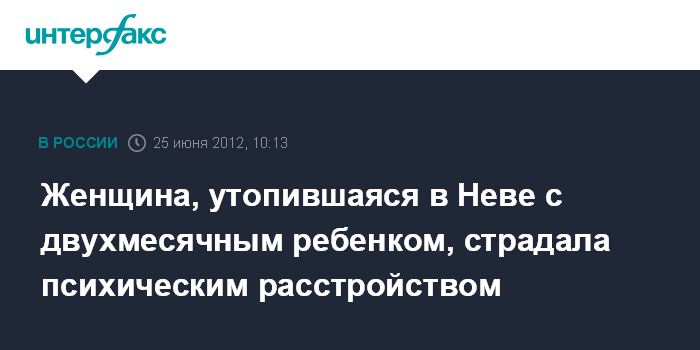 Женщина, утопившаяся в Неве с двухмесячным ребенком, страдала психическим расстройством