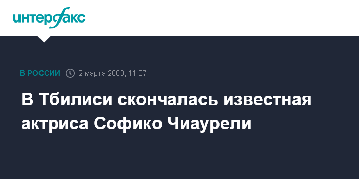 Тбилиси. 2 марта. INTERFAX.RU - Народная артистка Грузии Софико Чиаурели после продолжительной болезни скончалась в ночь на воскресенье в Тбилиси на 71 году жизни.